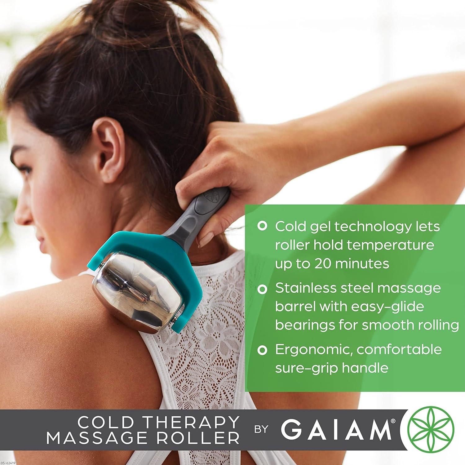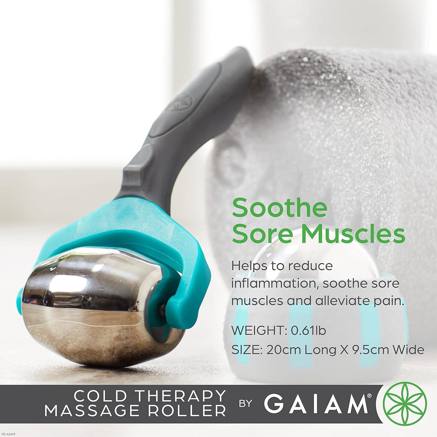 Gaiam Restore Cold Therapy Massage Roller – Easy-Glide Massage Ball Roller with Sure-Grip Handle – Muscle Massage Tool to Help with Sore Muscles, Neck, and Back Pain – Compact and Lightweight(1 EA)